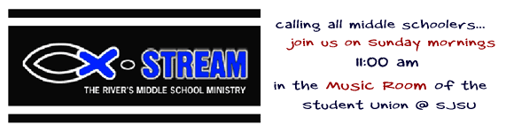 The middle school ministry meets on Sunday mornings in the Music Room of the Student Union at San Jose State University during 2nd service. (Student Union map) Adult volunteer leaders are responsible for helping greet the students, participating in games, and helping to lead small groups. Monthly activities are planned for students to connect outside the normal Sunday morning services. Leaders attend the monthly events, help with the Sunday morning service, and keep in touch with students during the week.