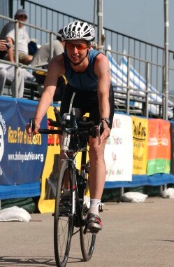 As I head for my bike, I hear ex-pro Chad Hawker cheer me