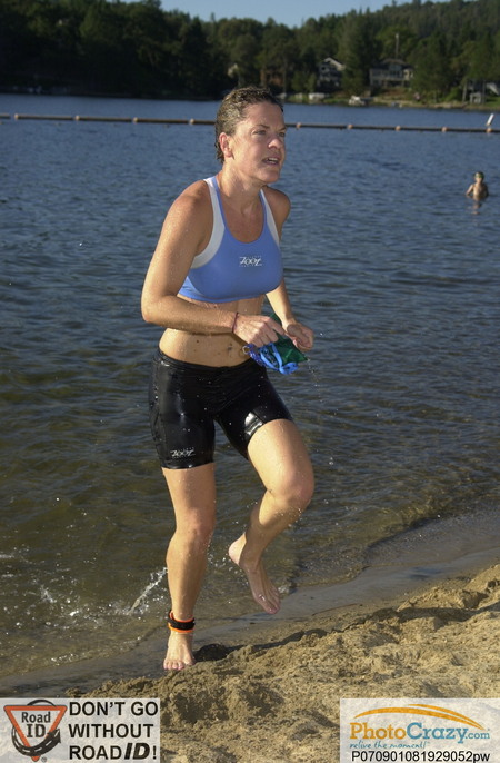 out of my wetsuit fast, I tuck my race number into my speedo, and now I'm