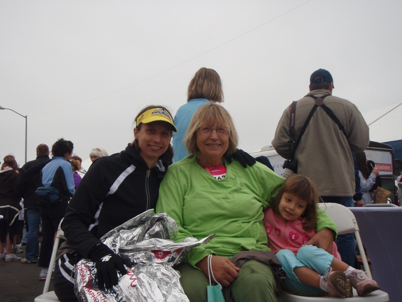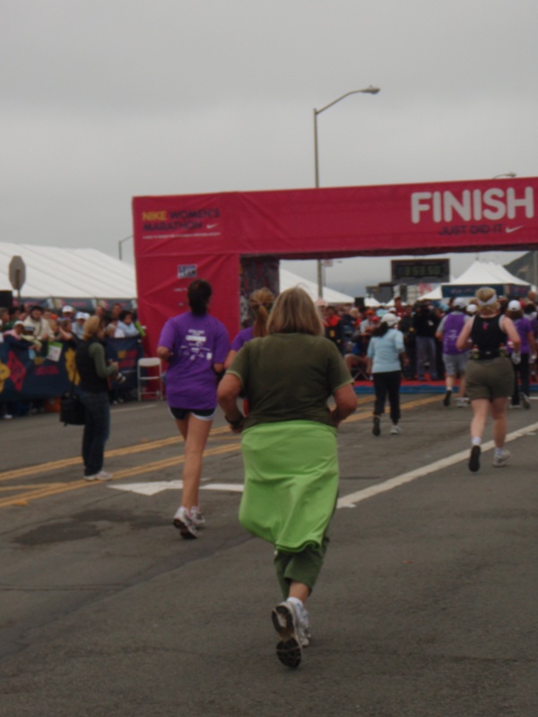 I don't see the gang so I find a volunteer with a phone. I call Troy and find out they are struggling to find parking. We agree on a meeting spot. Yeah, everything is good(= Time to watch Mom finish.