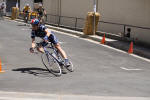 I’ve been looking forward to this since my first time last year. It was very hard 17th placing … I was very close to being lapped! But it was fun and I have an idea for doing better. The crit course is a 1.2 mile loop around the downtown shops. The first section is a short steep climb, following by a 1/2mi of flat and ending with technical descent to the finish stretch. That first climb did me in last time. After a couple laps I never saw the front pack again. Since then I’ve tried a couple things: being light & quick on the pedals, and “gluing” to another rider. The best test was riding with Todd Allington one day. He’s a stronger rider that I try to model myself after. Instead of starting slow and conserving for the top, I just “glued” to his wheel from the beginning and had my best climb. I’m excited to try it in the criterium.. be light & quick and “glue” myself to the front pack no matter what it feels like. A likely outcome, however, could be frying my legs and getting dropped after a few laps. That’s ok, I just want to know what it’s like up there with them.. how fast they go and if they ever slow down. Ever since my “kryptonite” experience (like Superman’s complete power loss) last week at the Auburn Triathlon, placing 20th out of 39th , I’ve been sick and haven’t ridden. But I felt better yesterday and did a practice ride with my neighbor, David. I included some repeats up this little steep climb. I found that the “light & quick” technique took only 1 second longer than the “mash-the-pedals” technique and I was less winded (lower heartrate) at the top. This means I can keep riding strong at the top instead of falling back in the pack. So it’s race morning and Lance Loveday and I are riding to downtown for some warm-up laps around the course. Our goal is 10 miles. The course is modified. A new, tighter corner at the bottom awaits us. It looks dangerous. We try it a bunch of times but I never get a good go at it due to different interruptions… bystanders, cars, wrong line, other cyclists. On our last try before the first race starts, I shoot down towards it my bike starts screeching like crazy. Ugh. Not smooth… and what is with that noise?! Lance says, “You better fix that brake”.