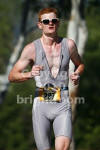 On your mark, get set, go! I jump off the line and try to get tucked in behind the lead pack. I'm successful for the first few hundred yards but get stuck behind a few other girls and loose them. I can see a few stragglers ahead so I surge to catch them. As I go to take a breath and sight ahead, I swallow water. Yikes, I didn't want to drink this brown water! Troy had told me not to. I make it around the first yellow buoy and catch one girl. I see a 2nd right in front of me and I push...better to try to get a draft so I can save some energy! Again, I accidentally take in water while sighting...yuck!