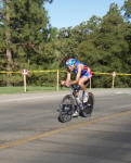 Campbell, in his tight aero position looking like a cruise-missle bearing